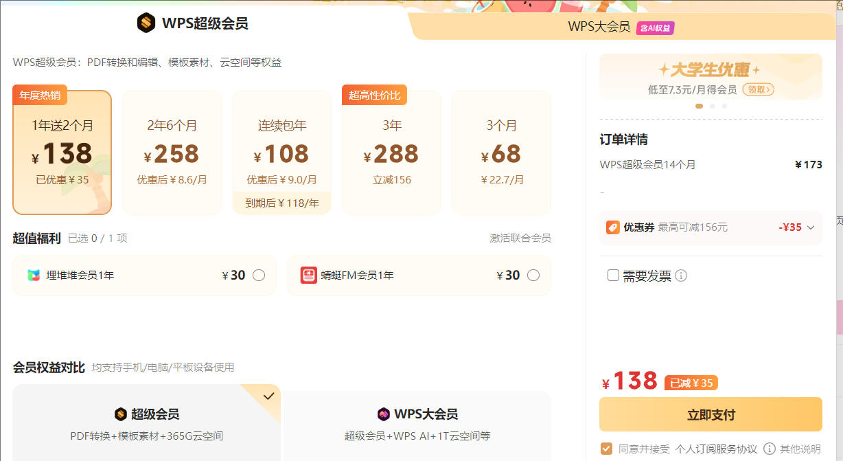 WPS超级会员超低折扣价在线充值